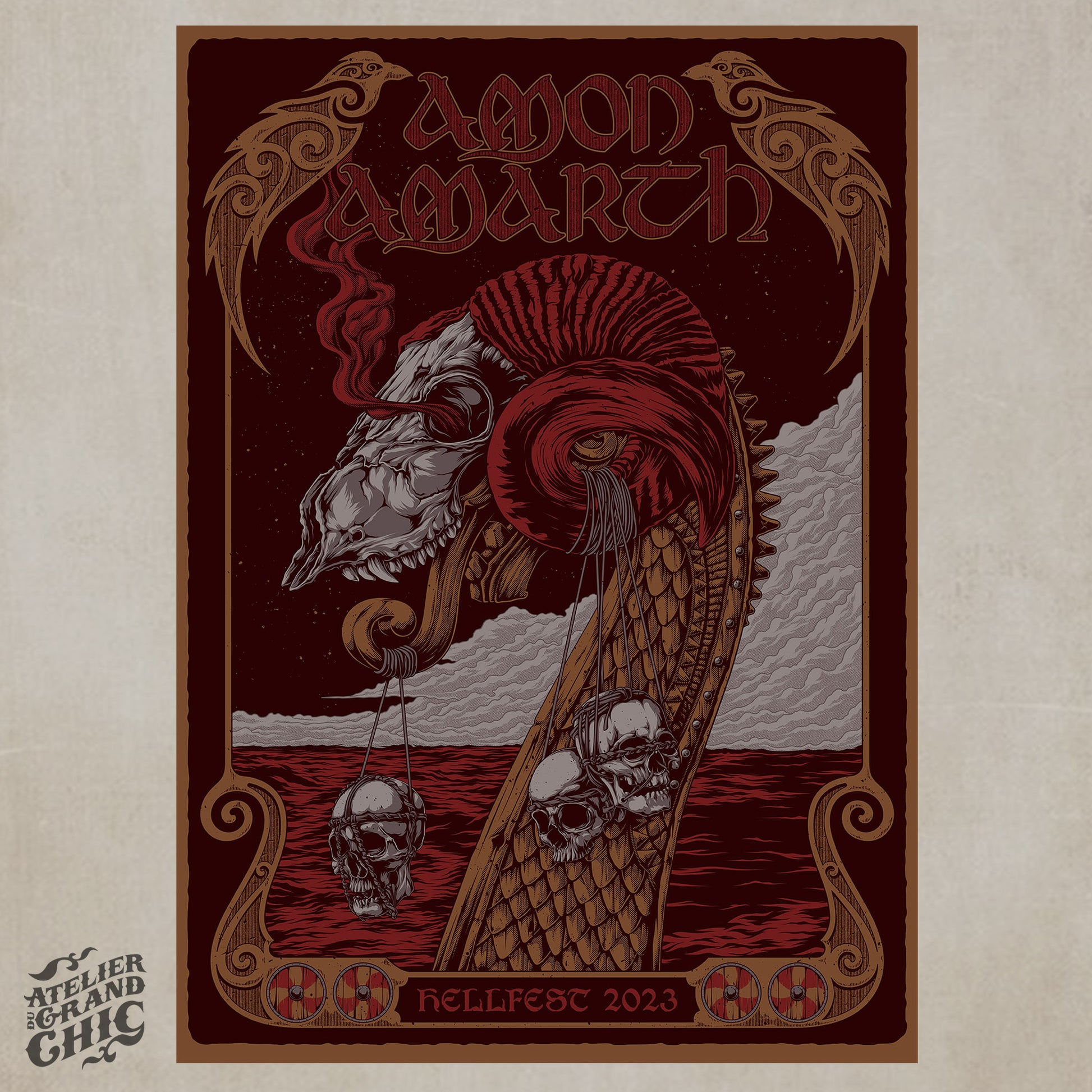 Official AMON AMARTH screenprinted gig poster / Hellfest 23