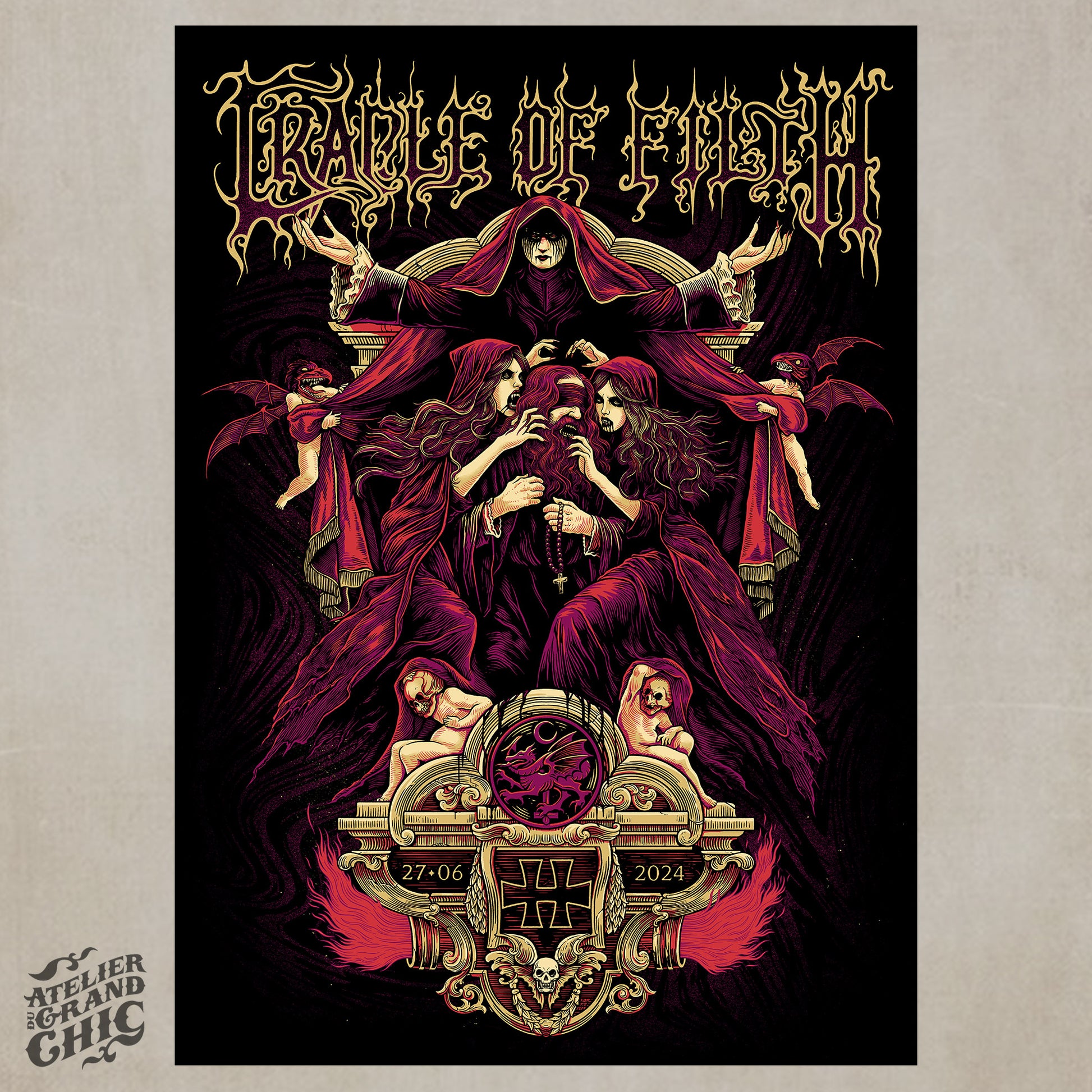Official CRADLE OF FILTH screenprinted gig poster / Hellfest 24