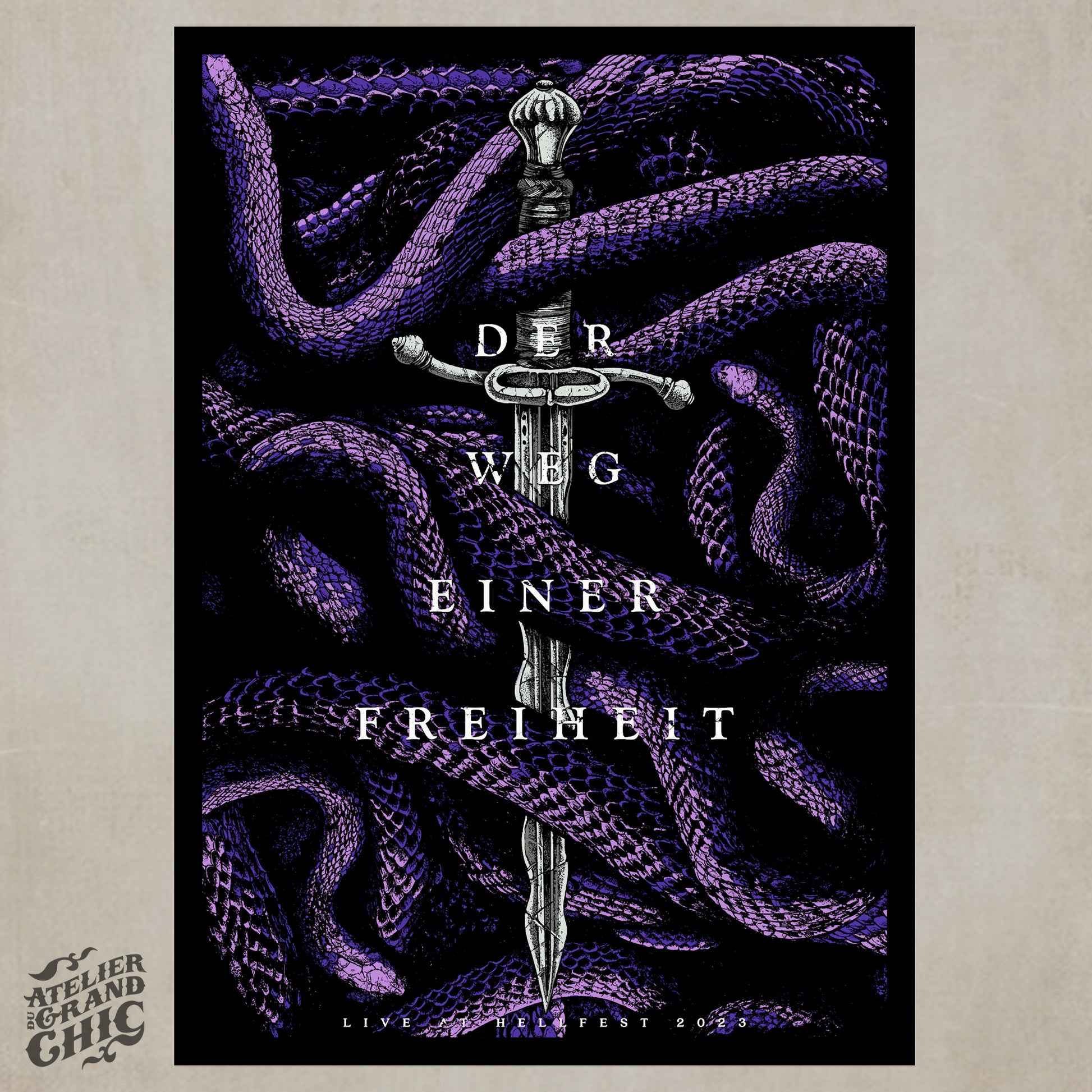 Official DER WEG EINER FREIHEIT screenprinted gig poster / Hellfest 23