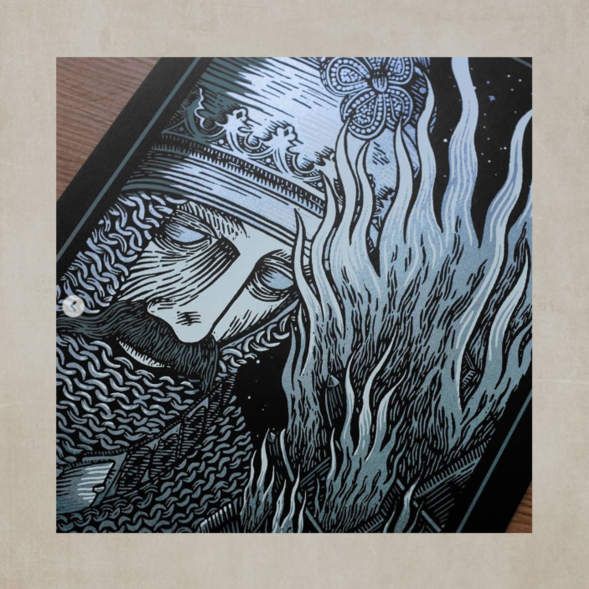 3 colors (including iridescent ink) on Ferdrigoni Sirio Ultra Black 300gr.